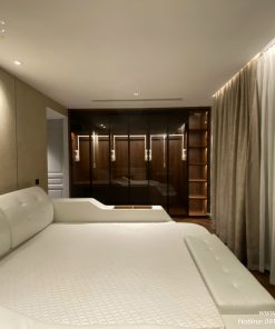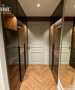 Kết hợp cùng hệ tủ quần áo cánh kính cùng hệ thống đèn led cảm ứng hiện đại