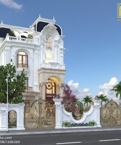 Biệt thự tân cổ điển 3 tầng 1 tum được thiết kế ngoại cảnh với gam màu trắng làm chủ đạo vô cùng nhẹ nhàng và thuần khiết. Bên cạnh đó kết hợp cùng các chi tiết trang trí tạo điểm nổi bật cho ngoại thất. Được KTS Mộc Minh Đức tỉ mỉ kết hợp giữa 2 phong cách thiết kế kiến trúc hiện đại, tân cổ điển, pháp vô cùng hài hoà. Điều này tạo nên sự lôi cuốn của vẻ đẹp thời thượng của phong cách kiến trúc tân cổ điển đẳng cấp.