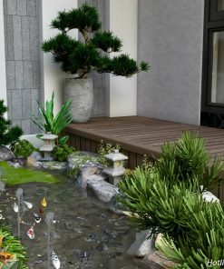 Phối cảnh 3D kiến trúc biệt thự phố 3 tầng mái nhật