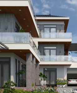 Nhằm đảm bảo an toàn cho các thành viên trong gia đình. Mộc Minh Đức sử dụng vật liệu lan can bằng kính cường lực cho cả tầng 2 và tầng 3. Ngoài ra mặt kính trong suốt sẽ làm nổi bật nên nét đẹp hiện đại, thanh thoát cho ngôi nhà.