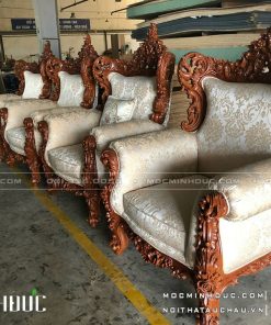 Sản Xuất Bộ Sofa Tân Cổ Điển Gỗ Gõ Đỏ Bọc Da Bò Nhập Khẩu